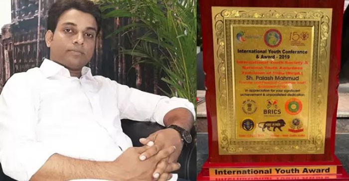 Palash Mahmod has received the 'International Youth Award' in Delhi for his contribution to preventing adulteration of food...
